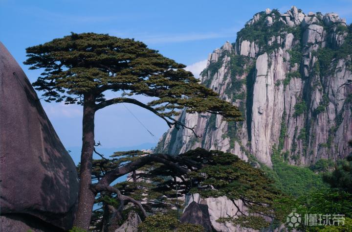 黄山原名“黟山”,因峰岩青黑,遥望苍黛而名。后因传说轩辕黄帝曾在此炼丹,故改名为“黄山”。黄山代表景观有“五绝三瀑”,五绝:奇松、怪石、云海、温泉、冬雪;三瀑:人字瀑、百丈泉、九龙瀑。黄山迎客松是安徽人民热情友好的象征,承载着拥抱世界的东方礼仪文化。