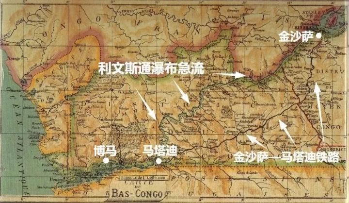 ▲1898年金沙萨(利奥波德城)—马塔迪铁路建成,刚果河上游货物可以通过铁路运输到马塔迪后通过河运出海