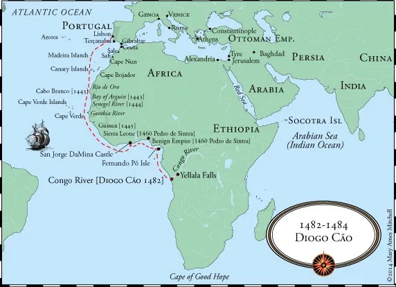 但随着新航路的开辟,刚果王国的历史进程,迅速被远道而来的葡萄牙所打断,此后的历史也逐渐明朗起来。15世纪后期,为了开拓外部市场及获取更多香料,濒临大西洋的葡萄牙率先朝着无边无际的大海进发,正式开启了大航海时代。