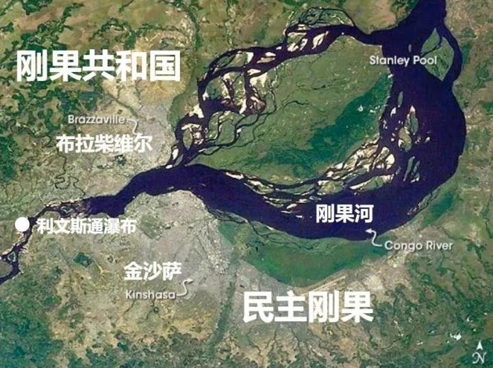 ▲利文斯通瀑布(又译李文斯顿瀑布)落差过大,无法实现上下游通航,法国和比利时不约而同在瀑布上游兴建城市
