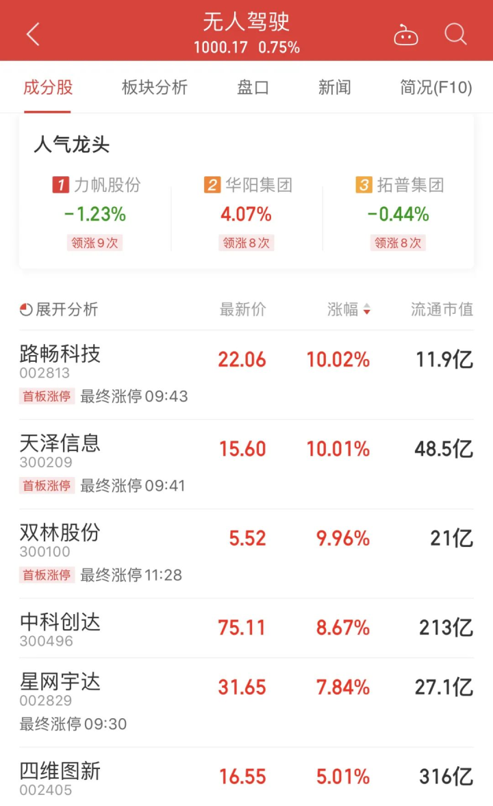 四就是这次自动驾驶网约车的正式亮相了。受这一消息影响,股市中的无人驾驶板块也集体走强,涨幅也在5-10%不等。