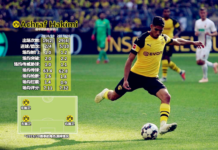 在租借加盟多特蒙德的两个赛季中,阿什拉夫交出了73场12球17助攻的成绩单,成为了五大联赛中效率最高的边后卫/翼卫之一。