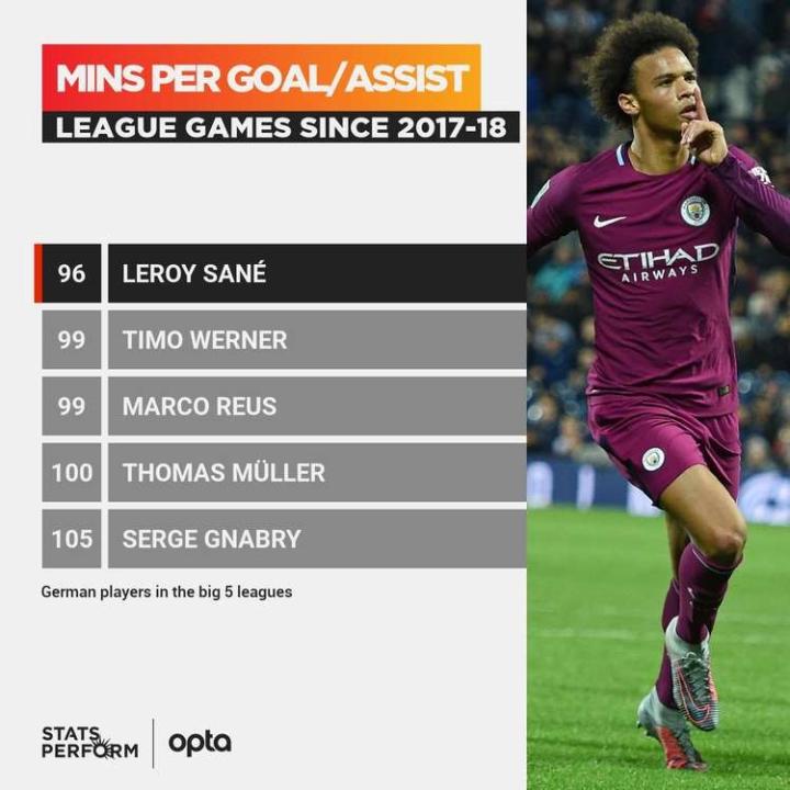 17/18赛季以来每96分钟造一球,萨内居五大联赛德国球员之首心中日月哥 @懂球帝2020-07-03 16:27据数据网站Opta统计,自2017-18赛季以来,萨内每96分钟就可以帮助球队打进一球或送出一次助攻,而这项数据在五大联赛的德国球员中排名第一。五大联赛德国球员创造进球率TOP5(自2017-18赛季以来)萨内,96分钟维尔纳,99分钟罗伊斯,99分钟穆勒,100分钟格纳布里,105分钟拜仁已正式签下曼城边锋萨内,双方将签约至2025年6月,据德转透露,萨内的转会费为4900万欧。展开更多