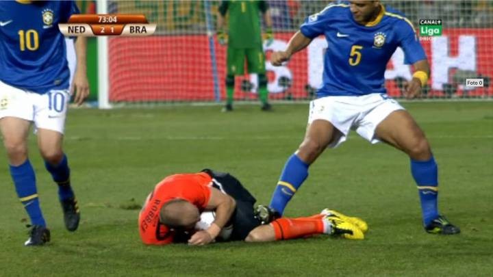 梅洛近日现身巴西某右派政客的宣传活动,并在活动期间发表了许多有争议性的言论。他在其中谈到了南非世界杯自己踩踏罗本的事情,并表示如果再来一次自己还会那样做。