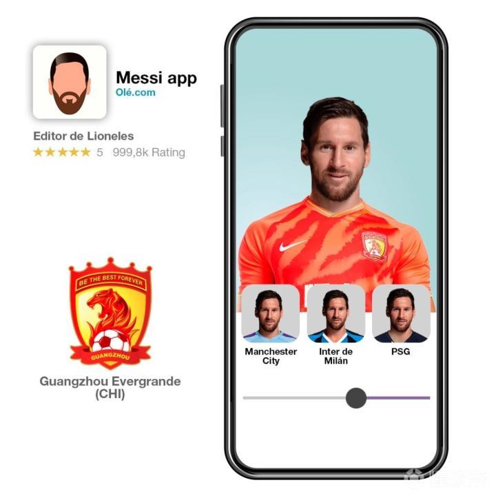 《奥莱报》报道称,试想哪位球迷不想让梅西穿上自己喜爱的球队的球衣呢?于是他们开发了一个“梅西 App”,给梅西穿上世界上任何球队的球衣。包括梅西儿时效力的纽维尔老男孩,阿根廷两大豪门博卡青年和河床,还有皇马、巴黎、曼城、利物浦、拜仁、国米……,以及穿上尤文球衣和C罗做队友,甚至还有中超球队广州恒大。