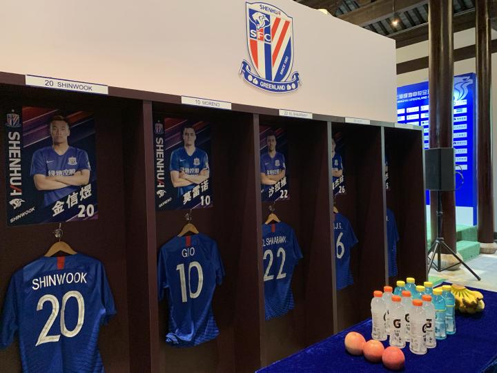 除了承载荣誉的奖杯之外,巡展还搭建了精心设计的申花历史长廊,回顾上海申花足球俱乐部从1993年成立至2019年的26年历程,原景再现申花康桥训练基地新闻发布厅与虹口足球场更衣室,带给参展人员身临其境、零距离感受申花精神的机会。