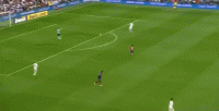 第35分钟梅西中场反抢成功,皇马后卫断下皮球后回传门将,皇马后场导球尝试转移,交给了回撤接应的拉斯-迪亚拉。此时法国人没有意识到他接球前,哈维已经启动,前场一对一断下了迪亚拉的脚下球,随即斜传禁区内助攻梅西破门得分。