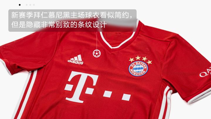 ENJOYZ足球上月初,德甲拜仁慕尼黑队率先发布2020/21赛季主场球衣,之后球员们穿着新球衣顺利拿下19/20赛季双冠王。今天的新品赏析,我们就一起来看看这件见证了冠军时刻的新球衣!