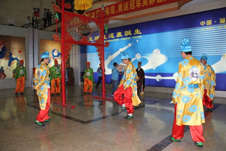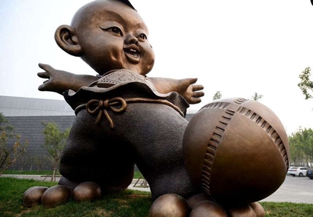 (图)临淄足球博物馆外的蹴鞠娃雕塑