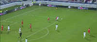 越位视频2-处于越位位置的队员向球的方向移动,且距球不远,在防守队员触球后立即争抢球,影响了对方队员处理球,干扰对方,越位犯规。