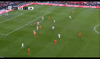 越位视频3-处于越位位置的队员干扰了对方队员向球的方向移动,影响了对方队员争抢球的能力,构成干扰对方犯规。