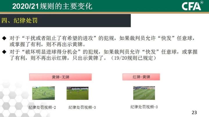 纪律处罚视频3-“干扰有希望的进攻”的犯规,裁判员掌握有利,随后无需再出示黄牌。