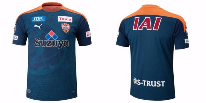 以海军蓝色外观亮相的这件2020夏季限定球衣延续了球队名扬四海的“地图模式”设计。同时,新球衣还加入灵感源自德川家康钟爱猎鹰的羽翼图案。出现在球衣肩部以及衣领上的“鼓动橙”(S-Pulse Orange)让这件夏季限定球衣看起来更具活力。球衣搭配“鼓动橙”配色球裤与球袜。