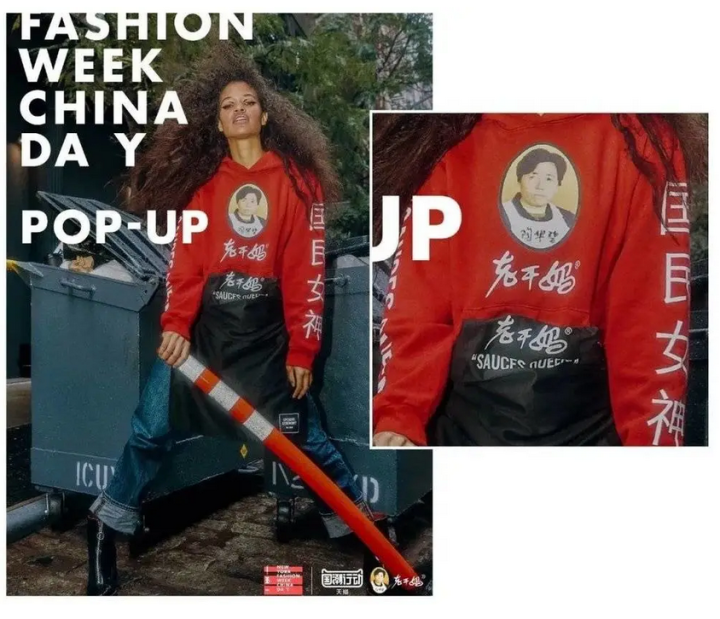 老干妈也凭借与Opening Ceremony联名推出的卫衣登上2019春夏纽约时装周,强势攻入时尚圈。老干妈与时装周的碰撞引起了强烈的反响,这款印着陶华碧头像和“国民女神”、“sauce queen”字眼的卫衣成功吸引了新一代的消费者。