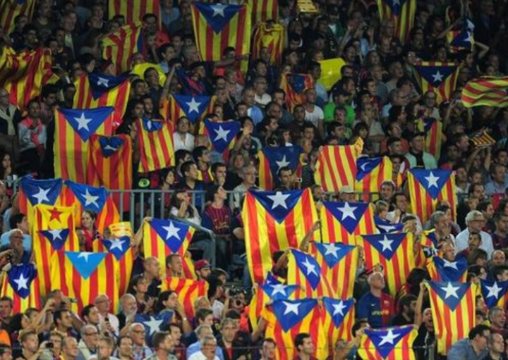 巴萨球迷高举加泰罗尼亚区旗