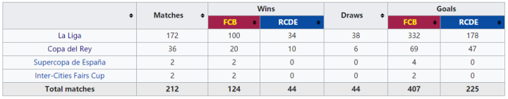 加泰德比历史战绩:巴萨123胜44平44负进406球丢225球,占据绝对优势