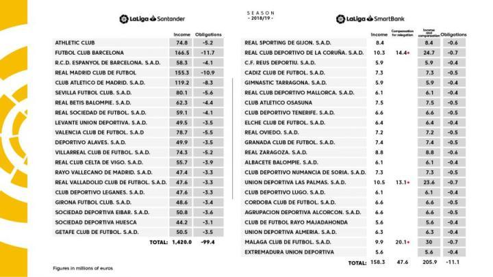 来自当地的西班牙人球迷Manu Carrasco还专门为西班牙人算了一笔账,大致预估了他们降入乙级后的收入情况。