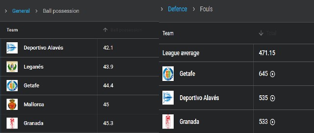 他们取得这一成绩的根源,在于稳健功利的打法,某种程度上和赫塔费也是不谋而合——这两队确实有诸多相似之处:在本赛季西甲的数据统计中,赫塔费和格拉纳达分列控球率倒数第三和第五;而在犯规数据上,则高居正数第一和第三。