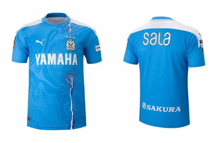 磐田喜悦2020夏季限定球衣采用了传统的天蓝色与白色搭配,球衣正面如同水流般的图案代表包括天龙河在内的流经俱乐部所在的静冈县的四条主要河流。球衣正面还加入象征机器摩擦发出的火花图案,同时也代表了球员斗志与球迷热情之间的相互碰撞。作为日本雅马哈株式会社的所在地,机械产业已经成为磐田市的一张名片,设计师也希望通过这一设计来展现“CRAFTED FROM CULTURE”的球衣设计理念。