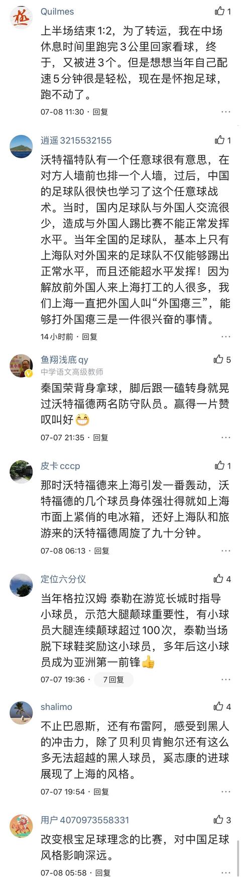 不少年长的球迷的确还记得这次沃特福德的中国行。前些天关于沃特福德中国行的这条动态,引来了不少老球迷——当然,其中有不少记忆中的是那场与国足的比赛。