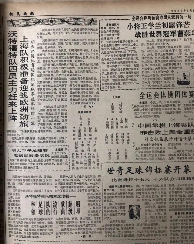 沃特福德主席,则是著名的歌星埃尔顿·约翰。前一日的《新民晚报》刊出了报道:《率领足球队的流行歌曲超级明星》。