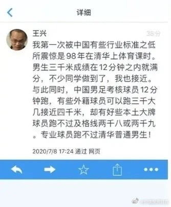 与此同时,中国男足考核球员12分钟跑,有些外籍球员可以跑三千大几接近四千米,好些本土大牌球员拍不过及格线两千八或两千九。专业球员跑不过清华普通男生!”