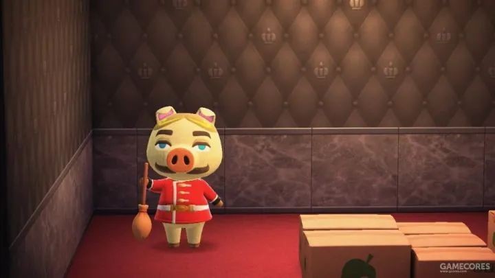 但也没啥别的办法,就这么相处了一两周。人吧,就怕日久生情。我每天对他冷眼相看,但是他回应的永远是温和和微笑,偶尔还会讲几个不怎么好笑的笑话。有一天,露营地来了哑铃,我其实不怎么喜欢他,但是他是我3DS时代的老村民,我就拿他换了豚皇。