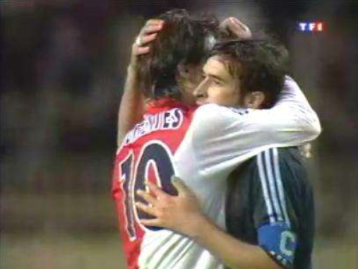 03-04赛季欧冠1/4决赛,劳尔和莫伦特斯拥抱告别