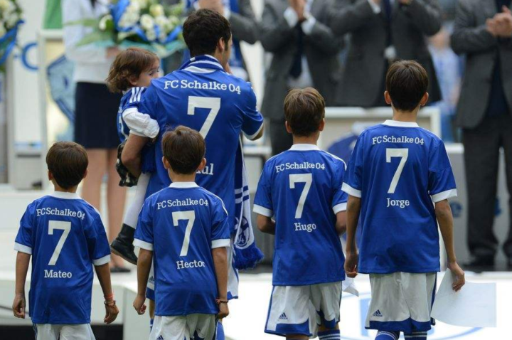 劳尔带着妻子马曼和孩子们,绕场一周向球迷们挥手,他的脸上一直挂着笑容,温暖又温馨,沙尔克留给劳尔的,是一段无比美好的回忆。