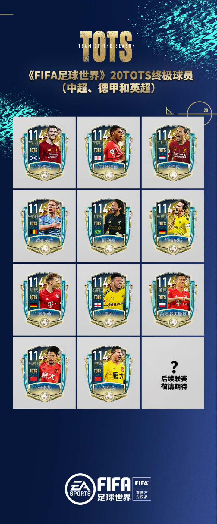 在此前的推文中我们提到过,之前大家投票选中的23名球员,在“20赛季最佳”活动中的基础卡可升级为“2020赛季最佳(TOTS)终极球员“。