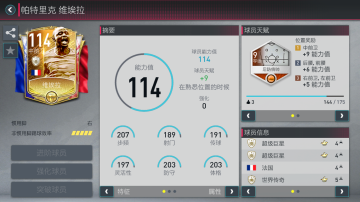 维埃拉维埃拉相信大家已经熟悉到不能再熟悉了,传世典藏维埃拉登场也有一段时间了,身披国旗的他是不少玩家朋友们披荆斩棘的一尊大杀器,身高腿长身板硬跑得快,这位后腰位上的全能战士如今也等来了自己的终极版——终极传世典藏维埃拉。