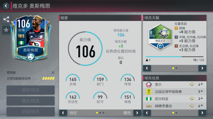 奥斯梅恩奥斯梅恩相对来说没有那么出名,不过这位效力于法甲里尔的锋线快马如今也有超过一千万的身价,这位被狼堡带到欧洲,辗转于德国比利时和法国的塞内加尔前锋也是被球探十分看好的未来之星。