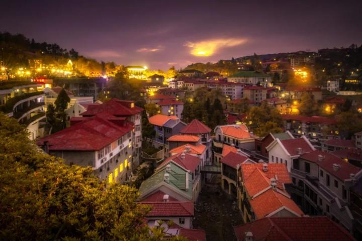 ▲ 夜晚的牯岭镇,灯火璀璨。你能想象她在山里吗?摄影/李鹏飞