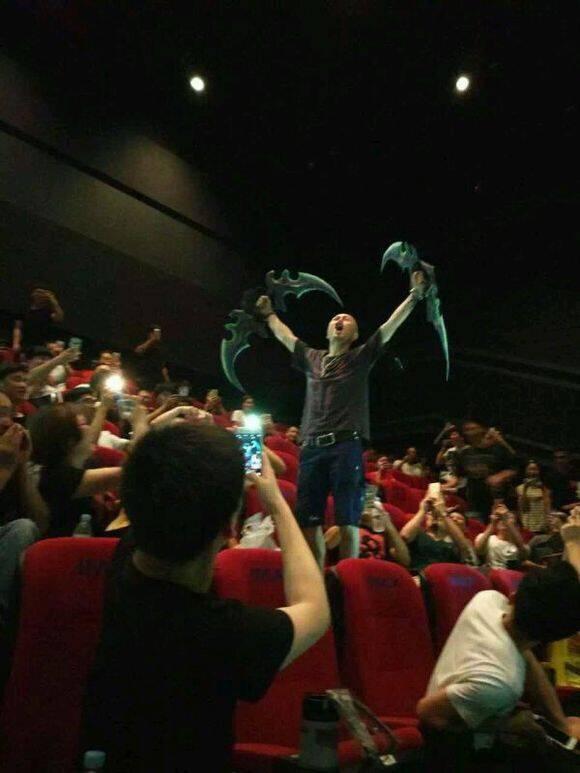 当然,在《魔兽》电影上映之时,我们还是相约去了电影院,哪怕电影拍的槽点恶评再多,也不妨碍我们在这两个小时内一起和这位久违的老朋友打个招呼。身边有许多和我们一样的人,部落、联盟欢聚一堂,罕见地没有相互攻击(也可能会互相嘲讽两句,但不会爆发团战),他们会在每一个带有魔兽元素的物料旁拍照留念(还有的自备道具,如下图)。