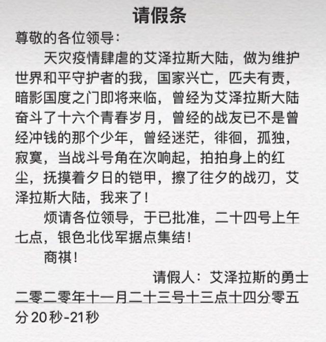 之后由于各种原因,我再一次不得不暂别艾泽拉斯,不过这次我和小伙伴们约好,等到新版本开放,我们一定会再回来。响应的有朝九晚五的银行狗,有从来不知双休为何物的程序猿,有昼夜颠倒的足球编辑,还有在加拿大顶着几百延迟的会长。前一阵网上有一位魔兽老兵走红,看照片难以想象这是一位81岁的老爷子。时常有人说男人至死都是少年,我想正是这份热爱让我们能够一直保持这份少年心性吧。