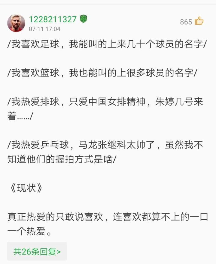 至于现在,中国体育迷的现状是什么呢?我在这里引用一段话吧。