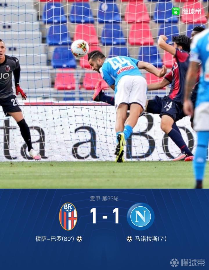 剑南春 丨意甲战报:博洛尼亚1-1那不勒斯,巴罗远射建功