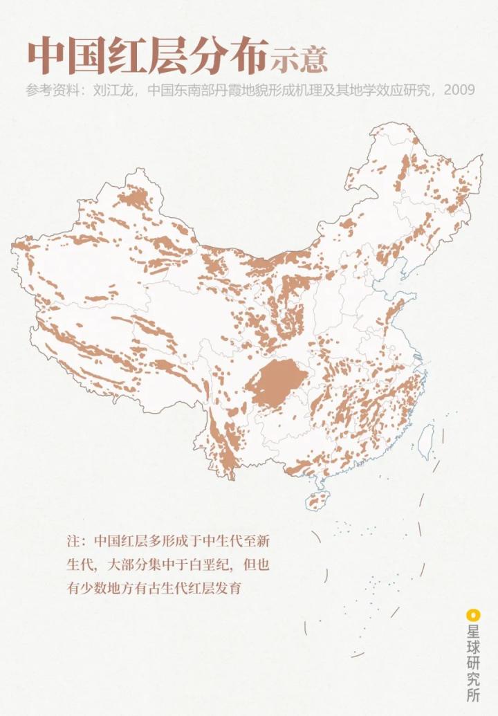 (中国红层分布示意图;制图:陈景逸&郑伯容/星球研究所)
