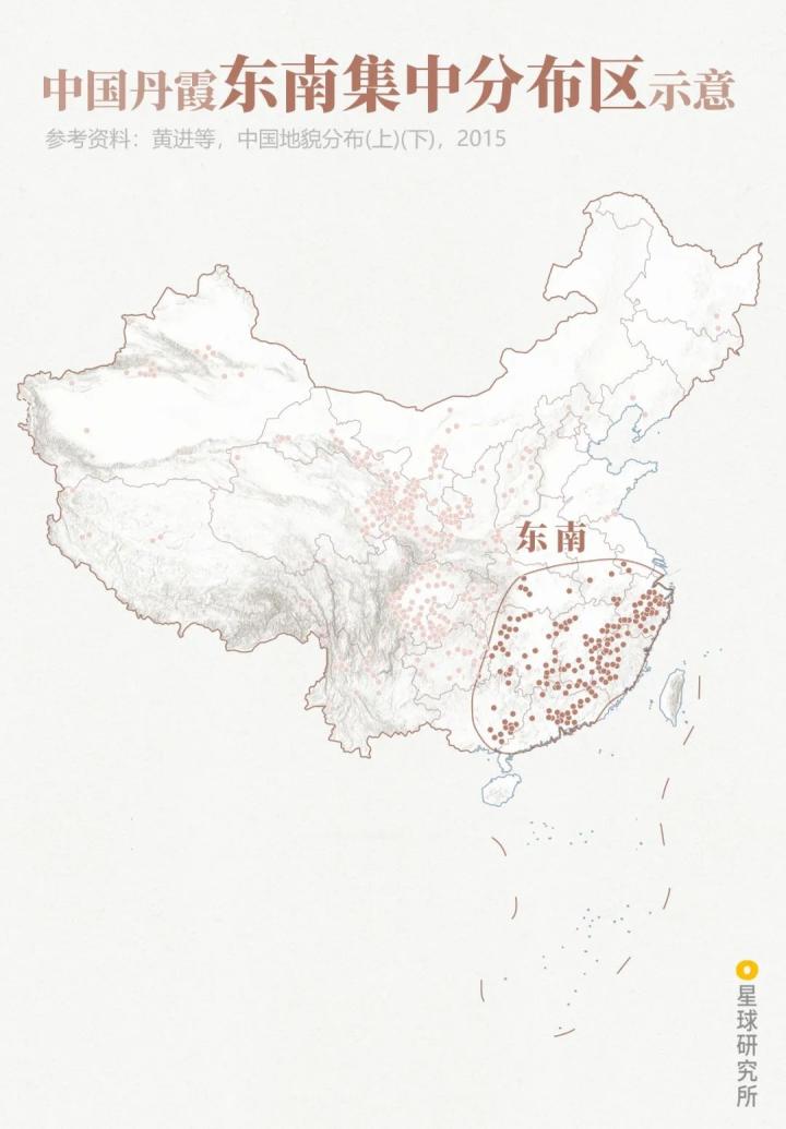 (中国丹霞东南集中分布区示意;制图:陈景逸&郑伯容/星球研究所)