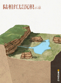 (氧化铁[Fe2O3]即为红色,也是铁锈的主要成分;亦有研究显示红层并非完全由干旱气候导致;陆相红层沉积示意;制图:郑伯容/星球研究所)