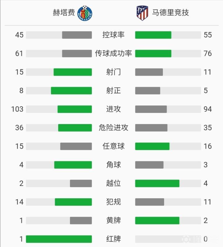 第49分钟,略伦特边路倒三角传中,迭戈科斯塔面对出击的门将凌空垫射打高。第53分钟,卡拉斯科前场带球推进,略伦特持球转身巧射得手,马竞客场1-0赫塔费。