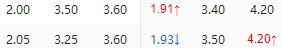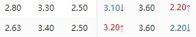 版型从232变为332,朝着国米利好的方向大幅度发展。似乎此处是国米的主场,无视罗马稳固欧战区的巨大战意。实事求是而论,国米争冠几乎不可能,能在赛季末排在蓝鹰头上便不错了,这样的变化,对于老妇人盟友罗马而言虽然不利,但果断的分离了罗马热度,将人们的思想高度统一到国米方。而从胜,平两项数值观察,平局过分拔高在机构看来可能性不大,而胜赔整齐划一的凯利指数,已经明示有打出的可能,客队危险至极。