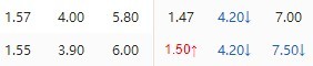 数值方面,有点像昨晚米兰传教士的数据。146版型变为147,朝着那不勒斯利好的方向 发展,否定了负打出的可能,客队筹码似乎仅剩下平局可以作为拉力。此略微降低胜指数比较谨慎,机构营造出一种保守看好的样子。但结合近期那不勒斯状态,此处恐怕没那么简单。到底是主队昂首,还是负负得正,再看亚指。