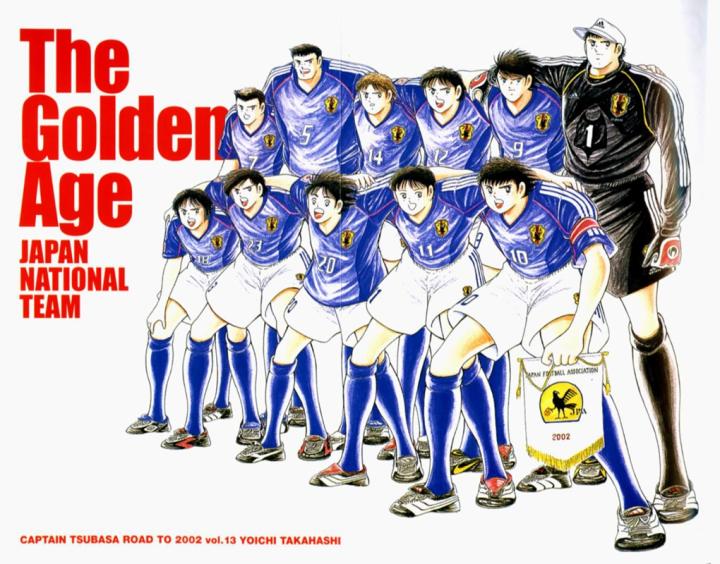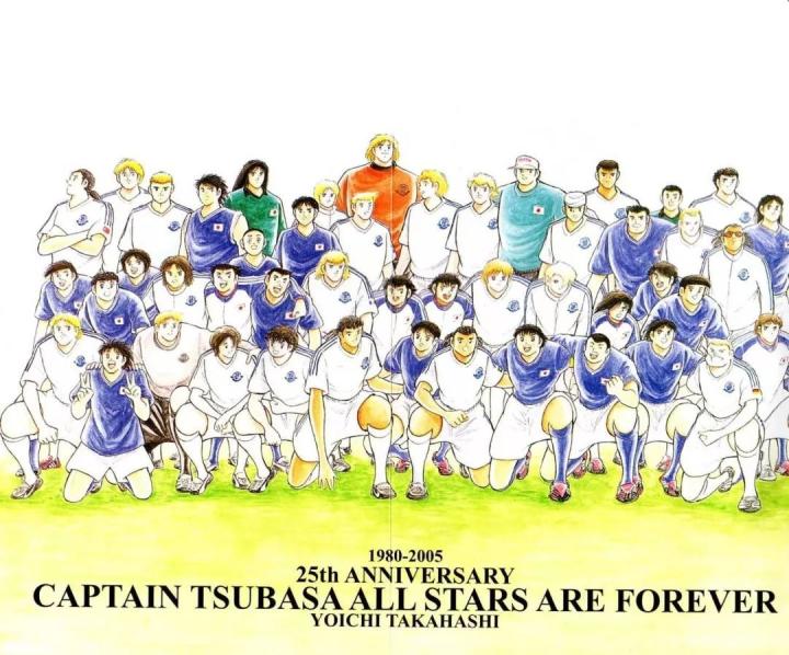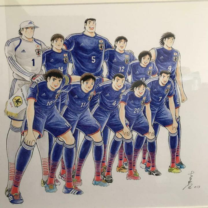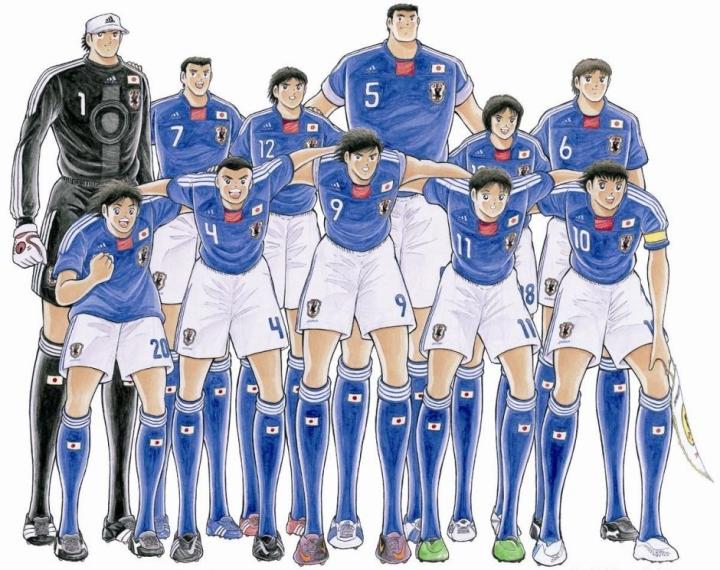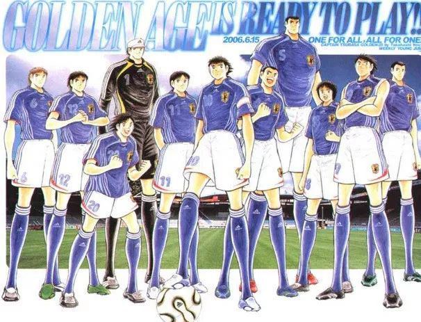 看图片,好像是2010年世界杯日本队获得了世界杯冠军,书我也没有看过,只知道了下面这张全家福应该是09-10年的日本动漫国家队照片,和举起大力神杯的图片球衣是同款。虽然只有一张图片,但我却可以非常肯定高桥阳一和adidas的深度合作关系,因为在这张全家福中,大空翼使用的球鞋是f50.i的一款白色,这款鞋是梅西的专属配色,三杠是阿根廷客场球衣的墨兰色,而且鞋面采用的是暗花烫印的纹理,如果没有深入了解过adidas的足球鞋产品,是不可能画出这款f50.i的细节的。而岬太郎穿的f50.i的绿色首发色。不过很明显这种全家福是在2010年世界杯以后画的,里面松山光使用的红色球鞋应该是adidas卡卡4代。当然南非世界杯用球加布拉尼的出现也在情理之中。