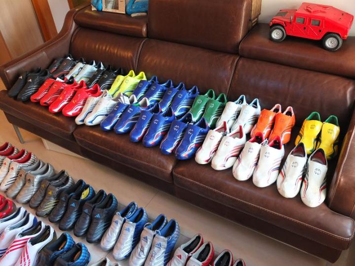 再之后的足球小将2007年的golden 23,黄金年龄,似乎这次adidas是下了血本,基本承包了足球小将们的装备,adidas刚刚在世界杯发布的f50.6 tunit大行其道,连之前一直使用nike球鞋的日向小次郎都穿了f50,而且颜色涵盖白兰、黑色、玫红,蓝色,蓝绿,绿色等多个配色,当然使用的足球也必须是06世界杯比赛用球团队之星。大空翼还穿过著名的白金色猎鹰8,岬太郎在世界杯之后穿的则是f50.7,球则是红色团队之星。