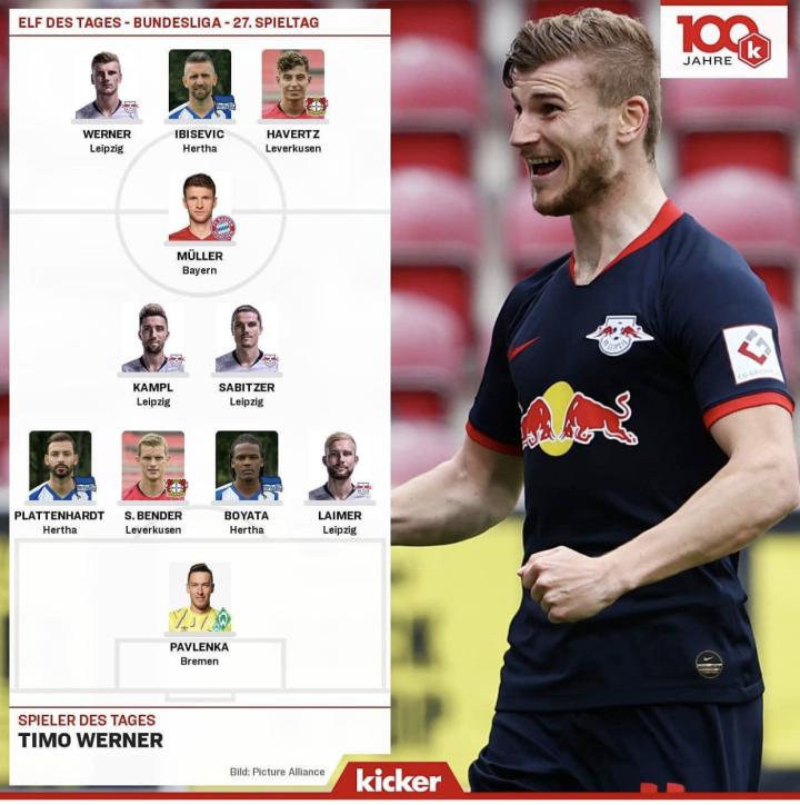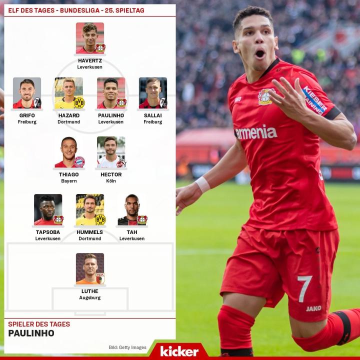 而随后一週对争前四的竞争对手门兴,继续担任中锋的哈弗茨再梅开二度,协助球队以3-1击败对手,在这场欧冠资格争夺战中取得重要三分。接连三週,哈弗茨被安排出任中锋,都能入选《踢球者》的每週最佳十一人阵容。反而在这轮中锋实验之前,哈弗茨只曾在本赛季德甲联赛第六週入选过《踢球者》每週最佳阵容一次。