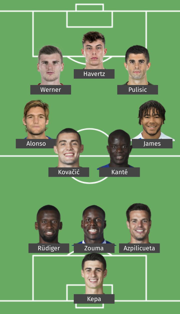 以下是个人认为哈弗茨加盟切尔西后的两个最佳阵容,一个3-4-3,一个4-3-3。