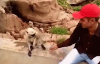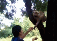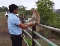 但猴哥却不同于猫狗这类萌宠,它是祖宗,更是野兽。杵这么近还不进贡,一巴掌拍死你,就当教训不肖子孙。