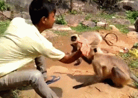 具有反抗精神的印度市民开始还击,一巴掌还过去,看它还敢嚣张。