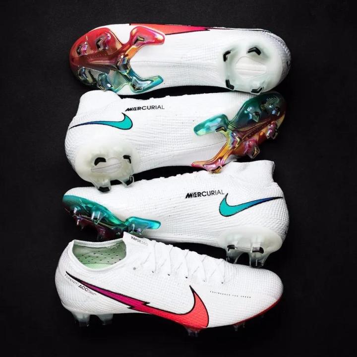 前不久耐克为Mercurial刺客和Tiempo传奇两大系列推出了名为“Flash Crimson”的全新配色套装。Flash Crimson套装均采用纯白色鞋面与带有渐变效果的红绿撞色搭配,通过强烈的对比带来全新的视觉冲击,清爽的配色在炎热的夏季带来一丝清新。